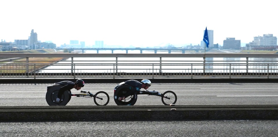 秋晴れのもと、一部が変更され新コースで行われた今大会は歴史に残るレースとなりました。男子(T34/53/54)は、東京パラリンピック金メダルのマルセル・フグ選手(スイス)が1時間17分47秒の世界新記録で優勝したのです。1999年に同じくスイスのハインツ・フライ選手がつくった、これまでの記録を2分27秒も更新する快走でした。