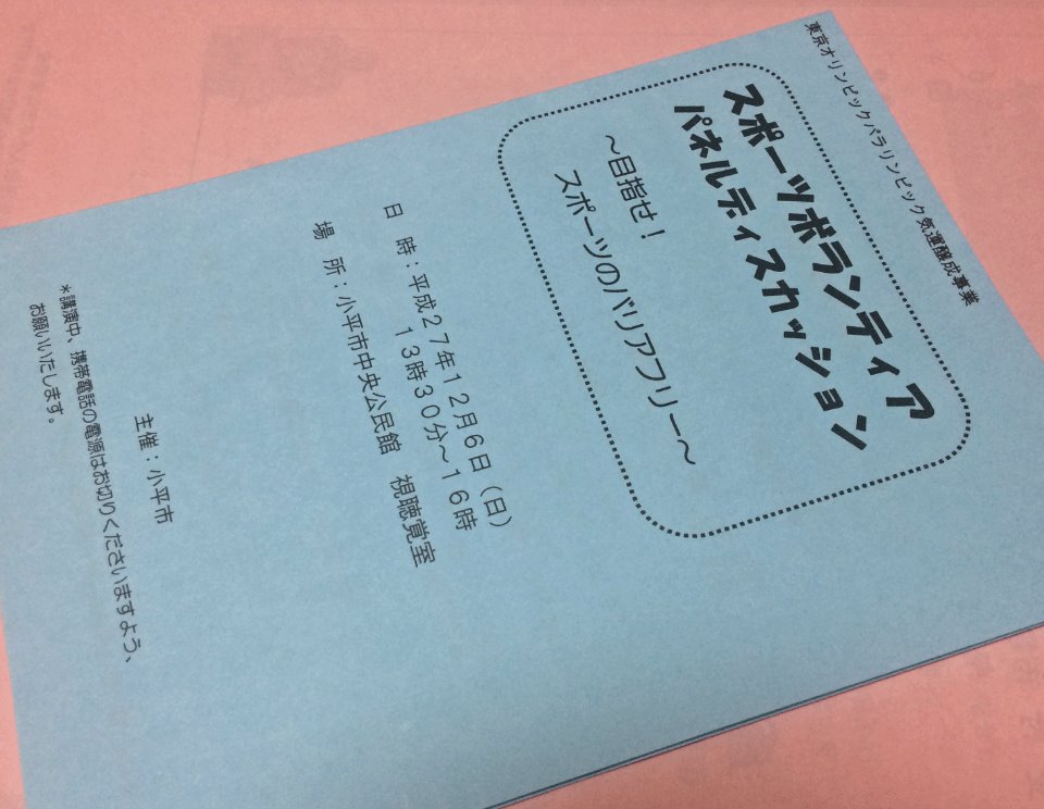12月6日(日)、小平市主催の「スポーツボランティア パネルディスカッション~目指せ! スポーツのバリアフリー」に講師として参加しました。(会場:小平市中央公民館)